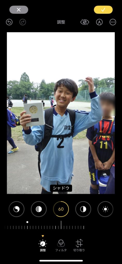 - iPhoneは「シャドウ」を上げると顔が一気に復活