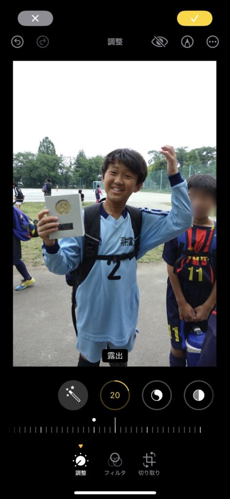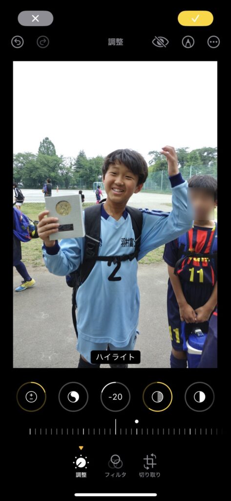 スマホでも少しの工夫で、逆光でもサッカー写真がぐっと見栄えよくなります。