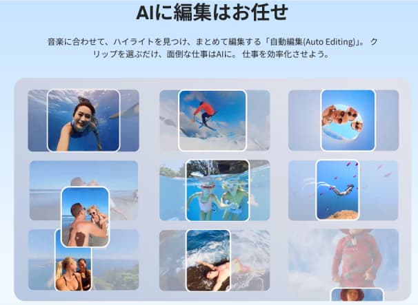 さらに魅力的だったのは、Insta360が紹介するAI自動編集機能。これにより、日々の編集作業の手間を軽減できる可能性があります。「どこまで自動化できるのか?」「最新技術は本当に役立つのか?」という知的好奇心もあり、試してみる価値があると感じました。
