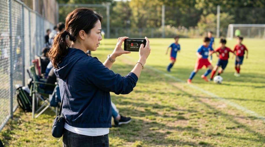 スマホで試合を撮るなら、モバイルバッテリーは「あると便利」ではなく「ないとリスクがある」装備です。