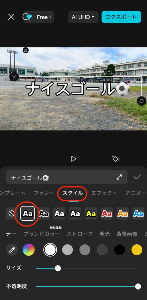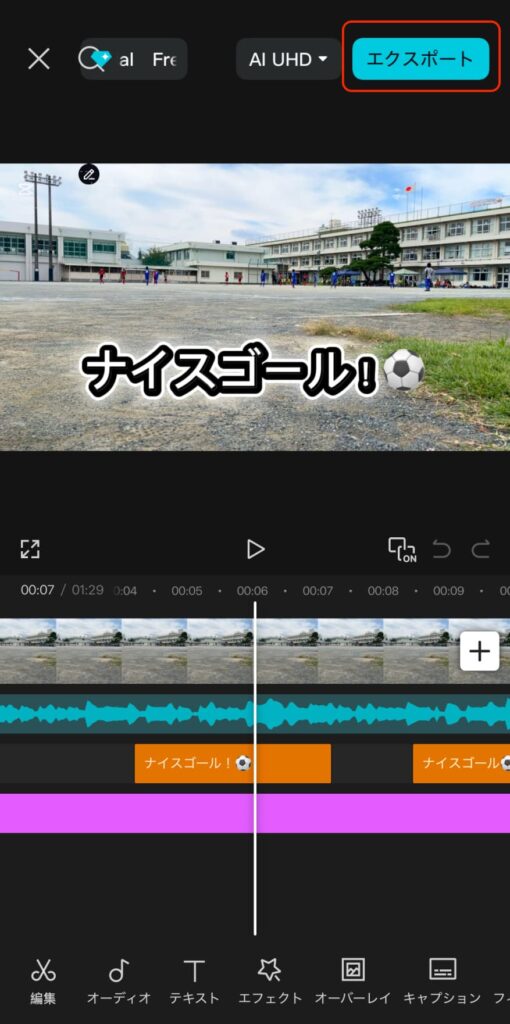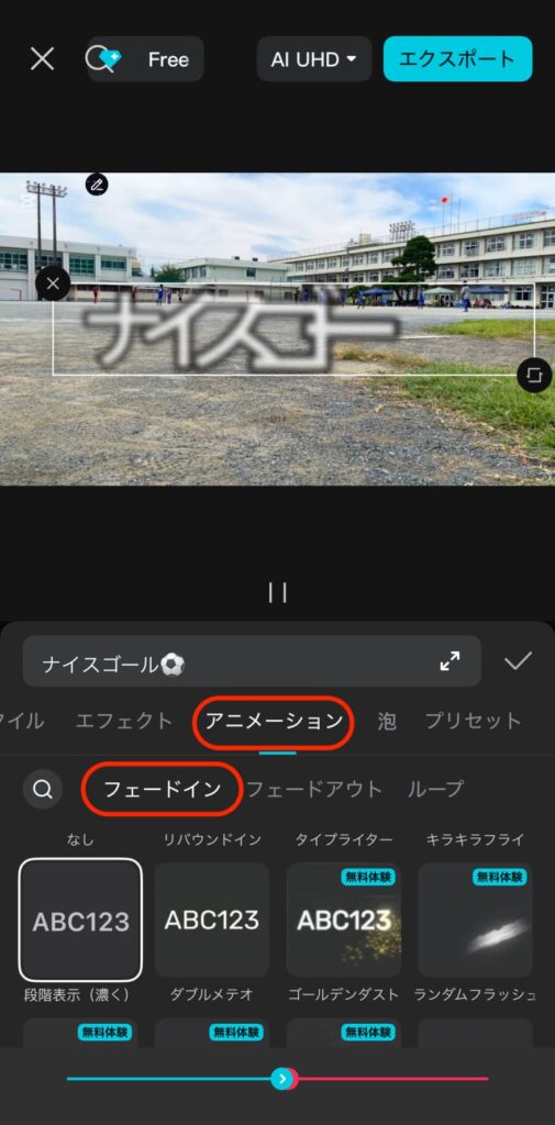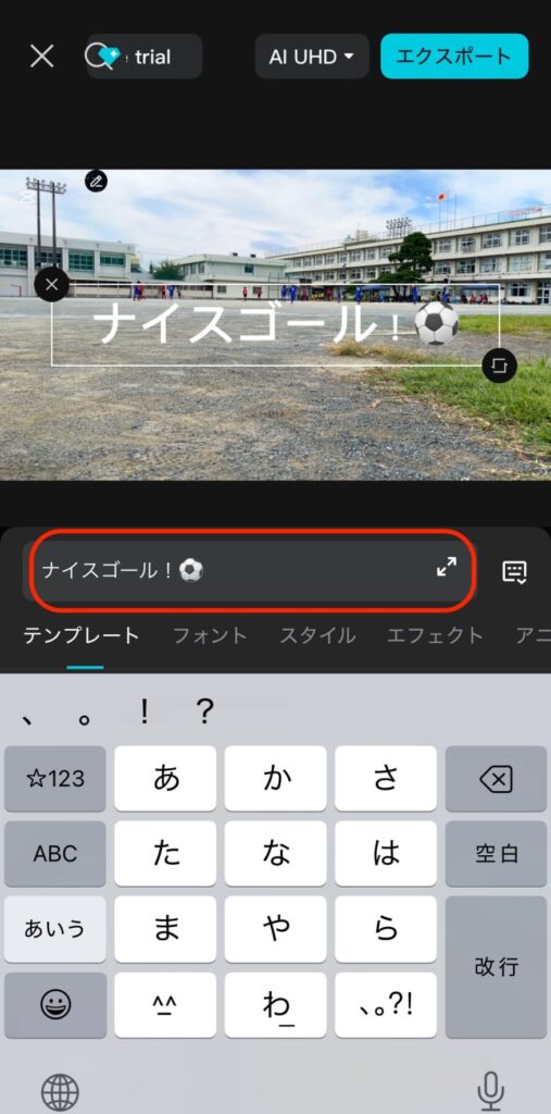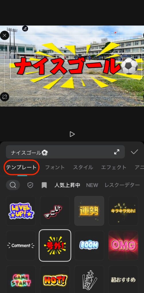⑥ テロップで「ナイスゴール!」など一言を入れる(盛り上げ効果アップ!)