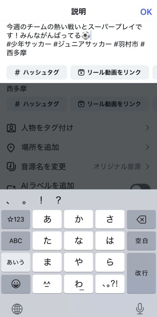 試合後の帰り道に編集して、その日のうちにインスタへ投稿。