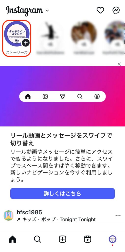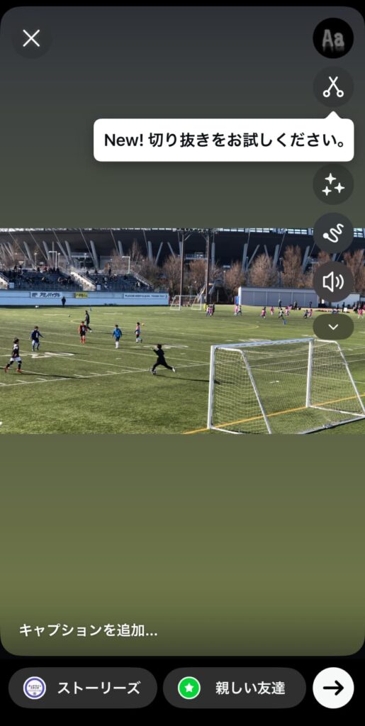 試合中のリアルな雰囲気を共有するなら、ストーリーズが最適。