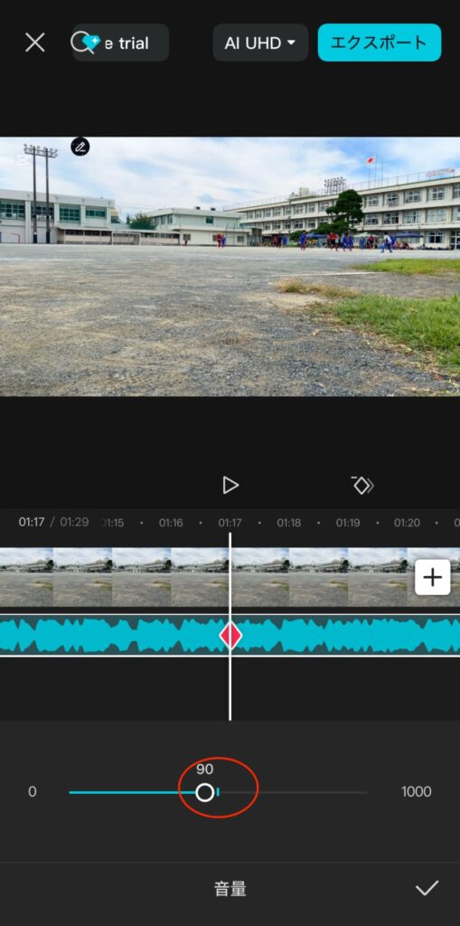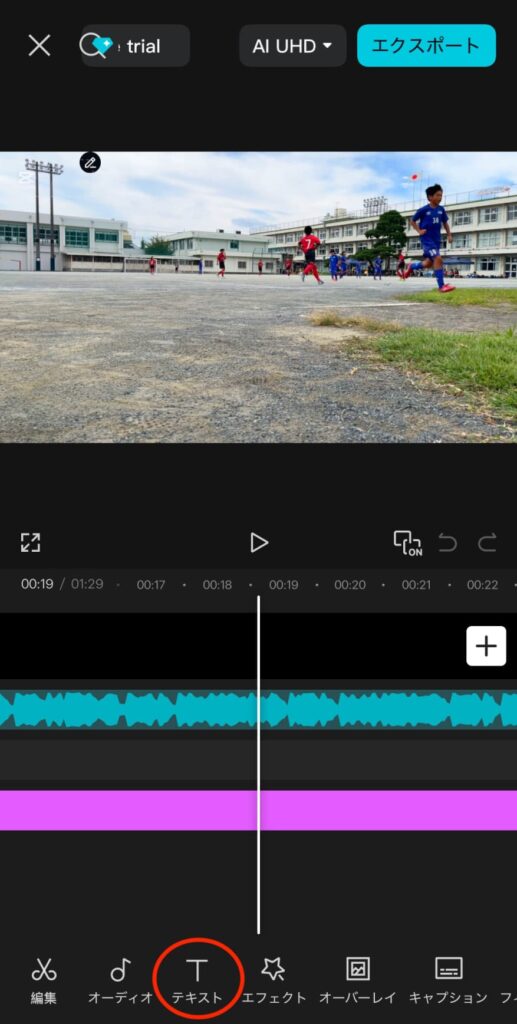 💡コツ:勢いのあるプレー前後を少し長めに残すと、臨場感が出ます。