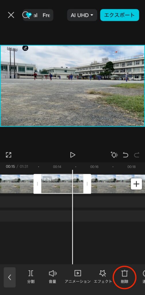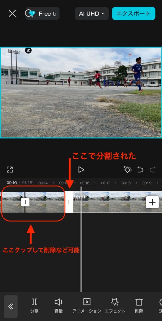 - 分割が完了すると、それぞれの部分で削除などの編集ができるようになります。これにより、使いたいシーンだけ残こすなど、シーンごとにさまざまな編集ができます
